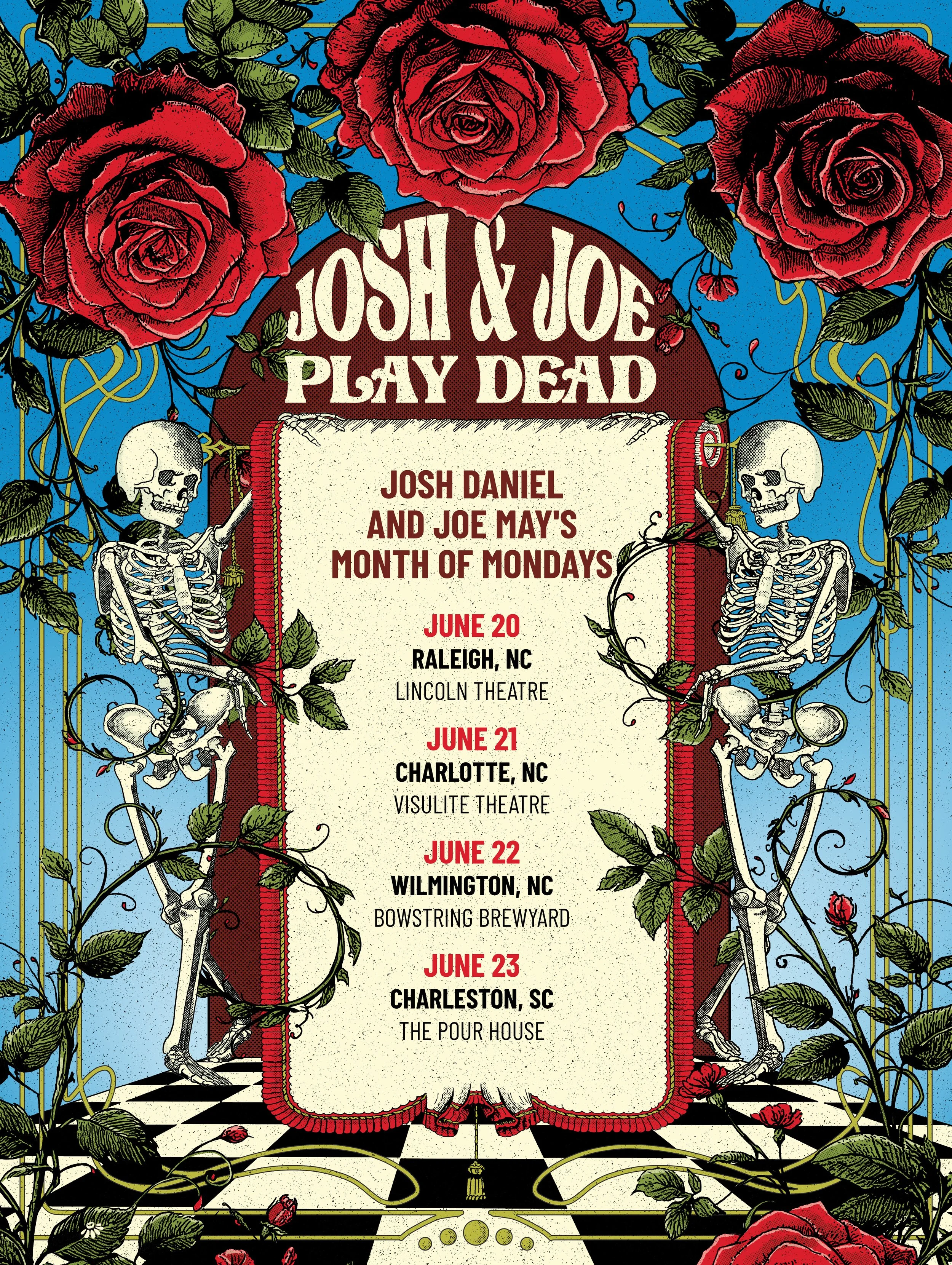18”x 24” poster (digitally printed) to promote a series of live shows played by Josh Daniel and Joe May’s Month of Mondays.